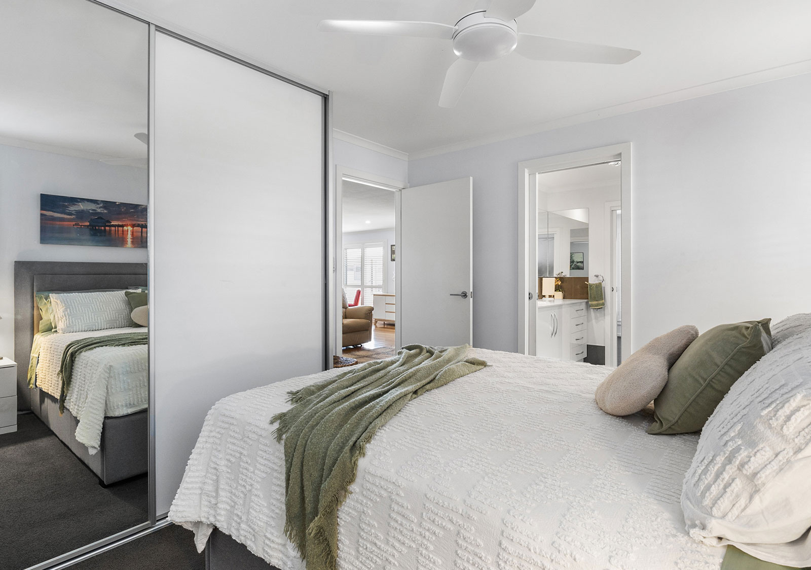 Additional features include a generous ensuite with full-length mirror, vanity in the second toilet, multiple linen cupboards, mirrored bedroom wardrobes, a well-appointed laundry with stone benchtop and built-in cabinetry, internal NBN connection, and thoughtful storage throughout.
