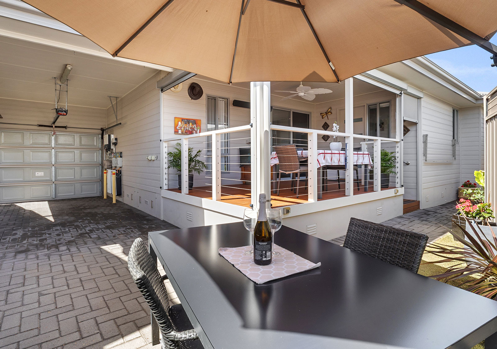 Positioned at the quiet end of the Lakeside community, this beautifully appointed two bedroom home enjoys a tranquil outlook across a grassed reserve with water views, just a short one minute walk away. Visitor convenience is well catered for, with three car parks located directly opposite the home.